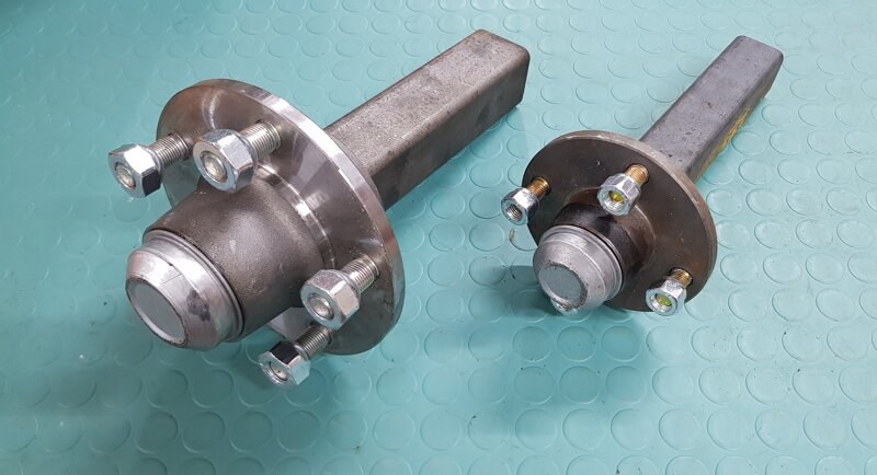 Semiassi senza freno completi di sezione quadro, cuscinetti, colonnette e dadi per il fissaggio del cerchio. Sezione idonea ad essere saldata ai telai. Mozzi carrelli robusti e di qualità.